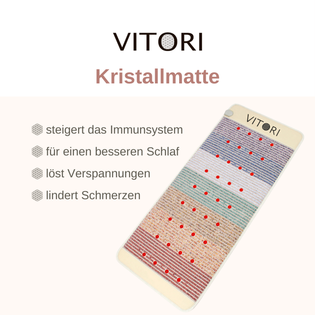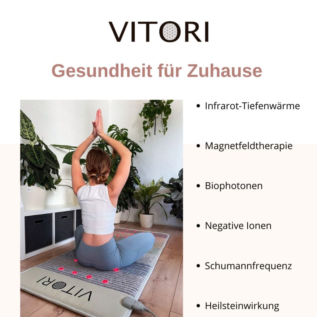 Vor allem in den Wintermonaten fehlen uns viele nützliche und gesunde Eigenschaften von der Sonne. Angefangen von der Vitamin D Produktion über die Sonne die uns im Winter fehlt. Hin zu der Infrarotstrahlung der Sonne, welche die Vitori Matte mit Ihrer Infrarot Tiefenwärme wohltuende und reinigende Wirkung hat. Dies findet laut Studien eine breite Anwendung bei allerlei Beschwerden.